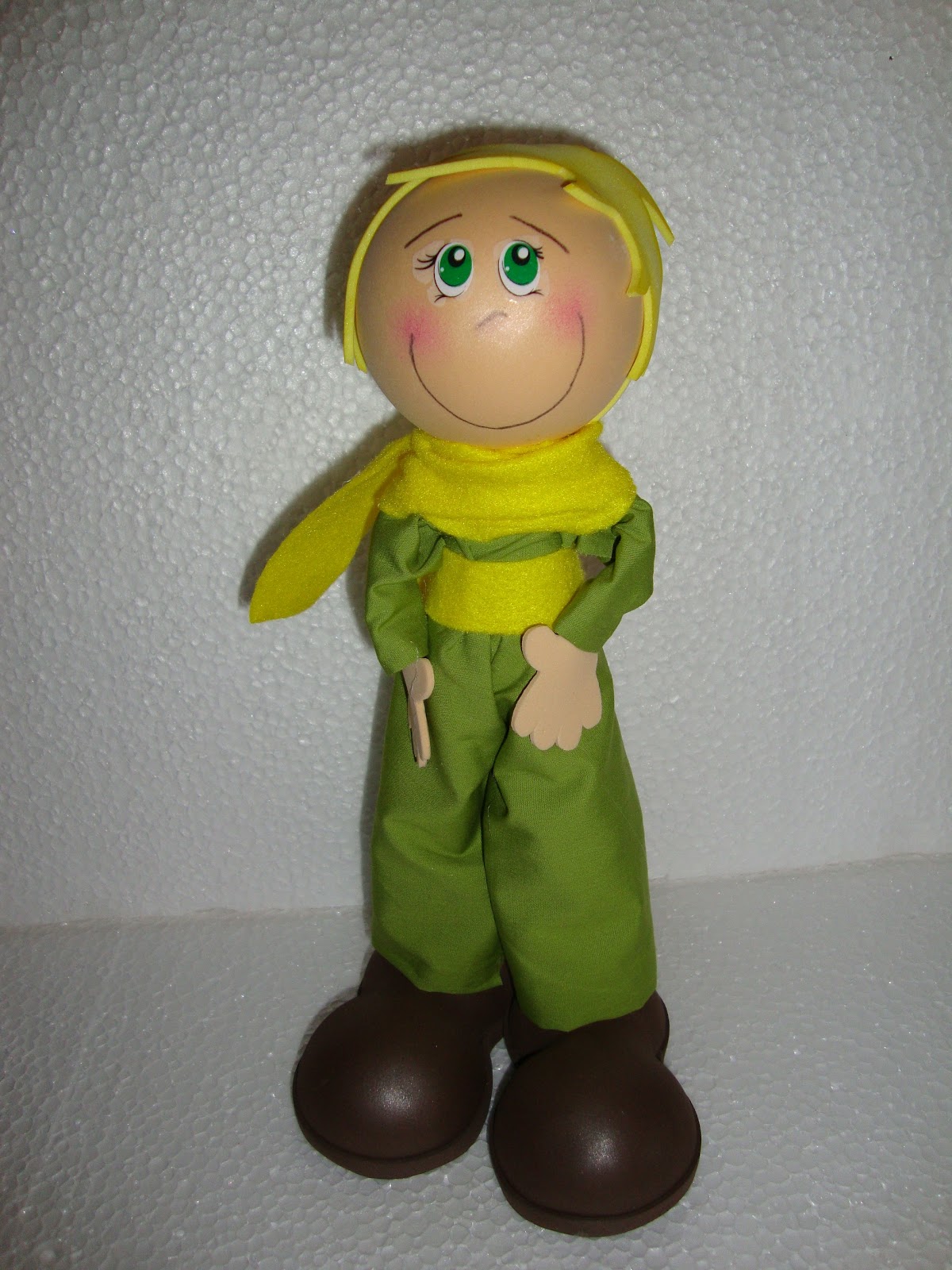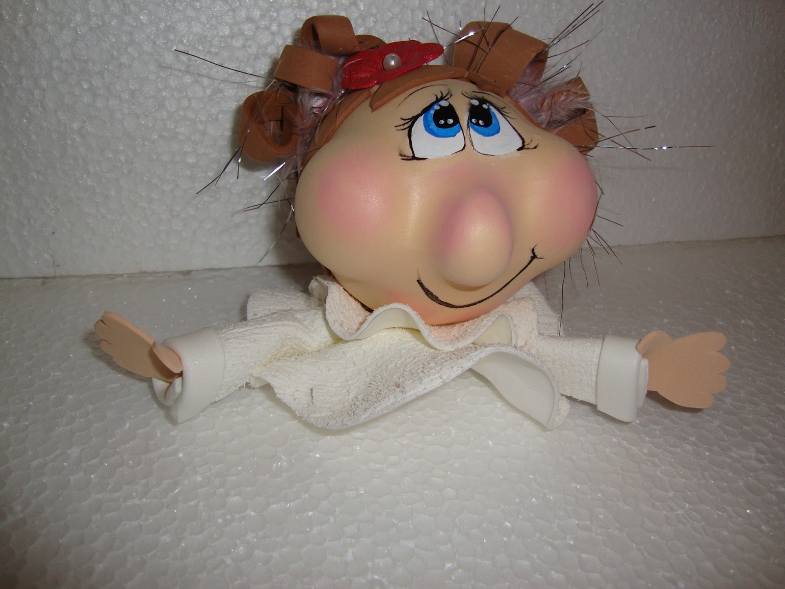 Caso você queira fazer uma boneca com a carinha confeccionada a partir de uma bola de isopor recoberta em E.V.A., por exemplo, pode fazer o vestidinho dela com tecido e até pregar botões para tornar o artesanato mais real e bonito. Nesse caso, use a cola quente para pregar. Quando a intenção é só dar acabamento, prefira a cola instantânea que não dá volume.